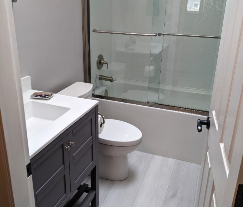 Replace old plumbing and fixtures, refresh style with contemporary tiling and flooring.