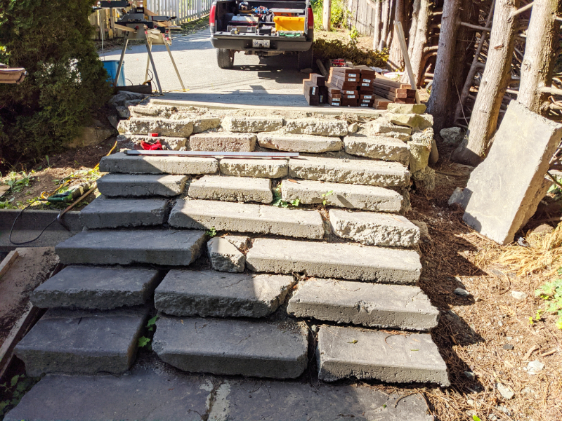 Below: before, during, and after. In response to his clients’ needs, Todd built a shallow rise and wider run to the steps, making them easier to climb.