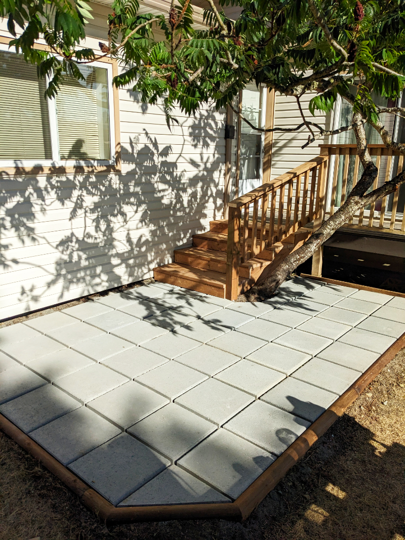 Access steps and a tiled patio give an ordinary yard beautiful space.