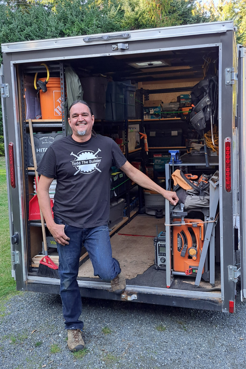 Todd, truck, trailer, tools, and a task: an amazingly good combo.